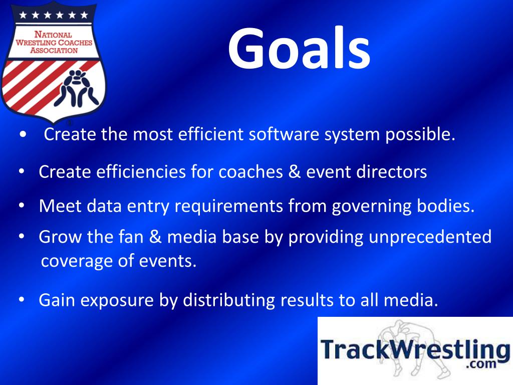 NWCA Statistics Program powered by Trackwrestling. Overview. The NWCA has joined forces with Trackwrestling to provide a Statistics Program and Event Management Tool to Colleges and High Schools across the country. Goals. Create the most efficient software system possible.