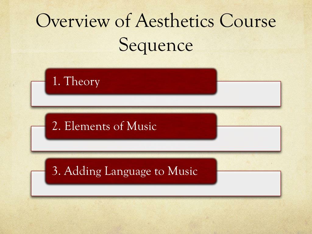 For each element (color, time, etc.) we undertake four types of investigation: • General discussion to limit attributes of the element; • Examination of Academy Award recognized film scores providing examples of the effective use of element and discovery of general principals that govern use of the element; • Practical attempts of students to communicate emotion using only the element under investigation; • Two minute student composition focusing on element.