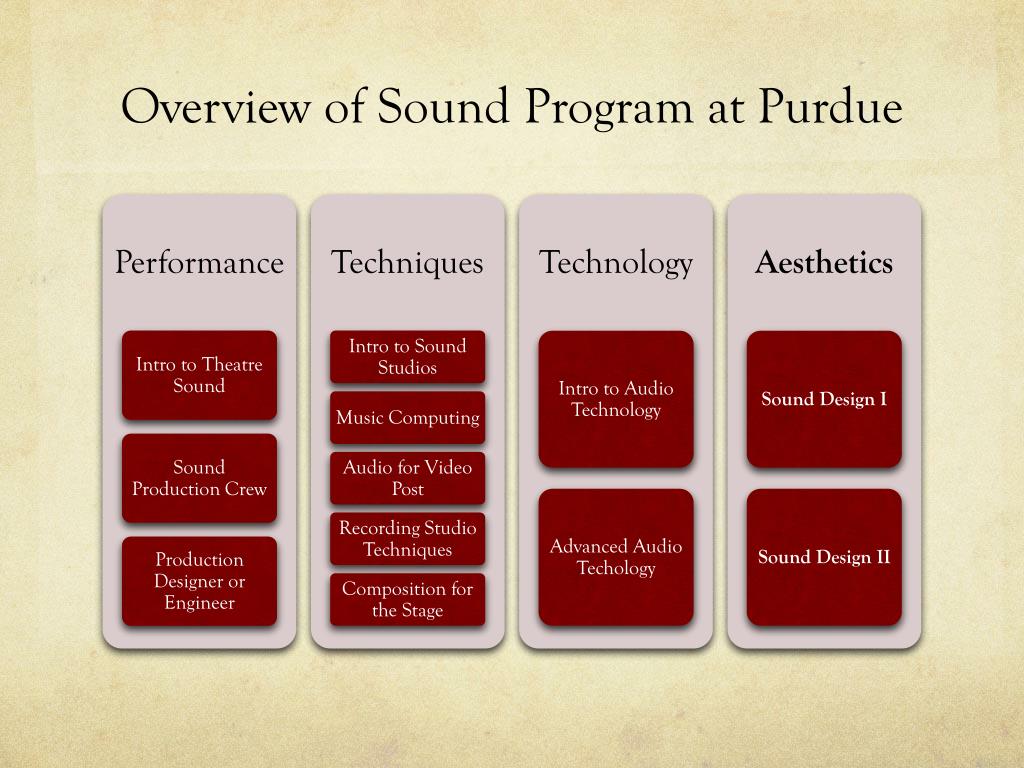 Listening to Theatre. Teaching Aesthetics of Theatre Sound. Overview of Sound Program at Purdue. Overview of Aesthetics Course Sequence. Theory.