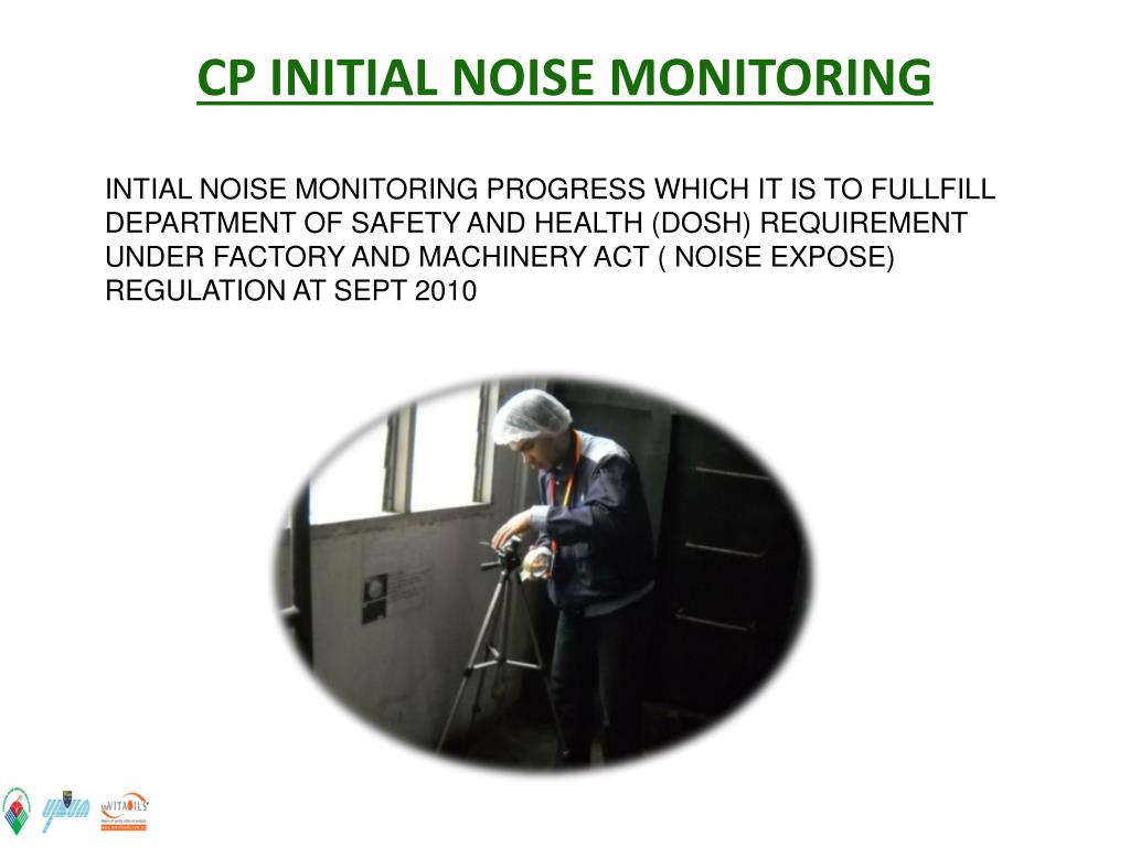 CP INITIAL NOISE MONITORING INTIAL NOISE MONITORING PROGRESS WHICH IT IS TO FULLFILL DEPARTMENT OF SAFETY AND HEALTH (DOSH) REQUIREMENT UNDER FACTORY AND MACHINERY ACT ( NOISE EXPOSE) REGULATION AT SEPT 2010