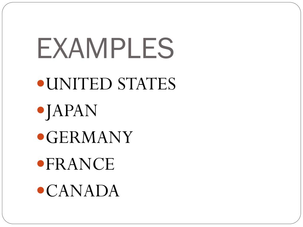 EXAMPLES • UNITED STATES • JAPAN • GERMANY • FRANCE • CANADA