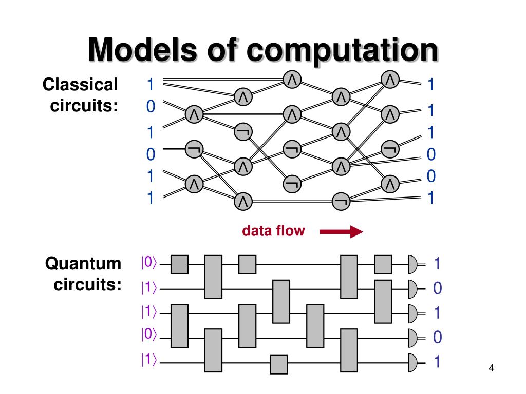 1 Λ Λ 1 Λ Λ 0 1 Λ Λ Λ 1 1 Λ 0 0 Λ Λ 1 0 Λ Λ 1 1 Λ data flow 0 1 0 1 1 1 0 0 1 1 Models of computation Classical circuits: Quantum circuits: