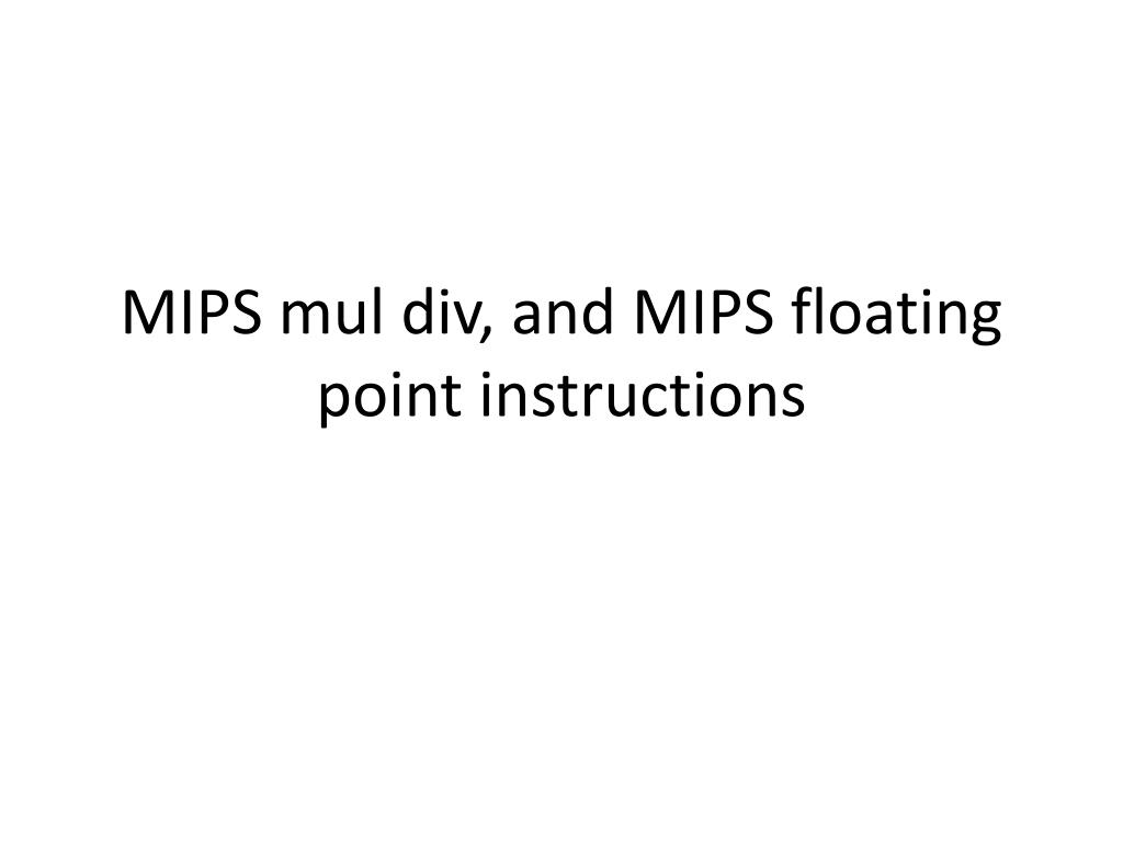MIPS mul div, and MIPS floating point instructions. Multiply and Division Instructions. mul rd, rs, rt puts the result of rs times rt in rd div rd, rs, rt A pseudo instruction puts the quotient of rs/rt into rd. hi and lo. Special ‘addressable’ registers