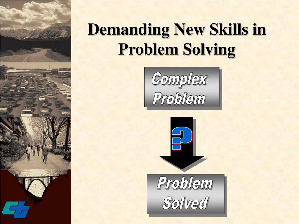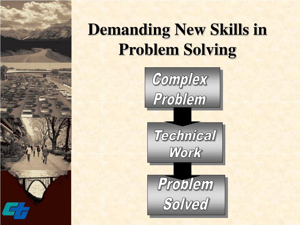 Demanding New Skills in Defining the Problem What is the problem? • More Capacity • Mode Shift • Land Use • Visual Character