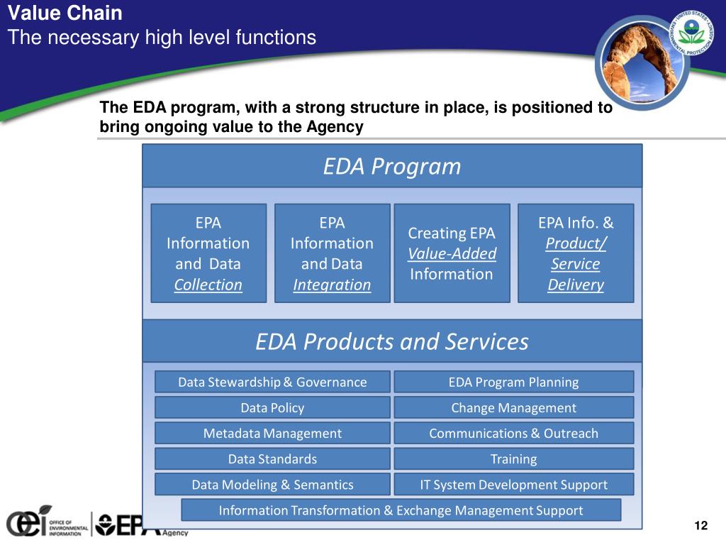 Value ChainThe necessary high level functions The EDA program, with a strong structure in place, is positioned to bring ongoing value to the Agency