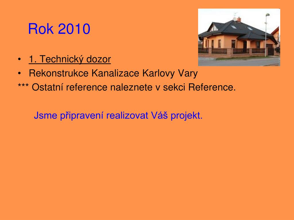 Rok 2010 • 1. Technický dozor • Rekonstrukce Kanalizace Karlovy Vary *** Ostatní reference naleznete v sekci Reference. Jsme připravení realizovat Váš projekt.