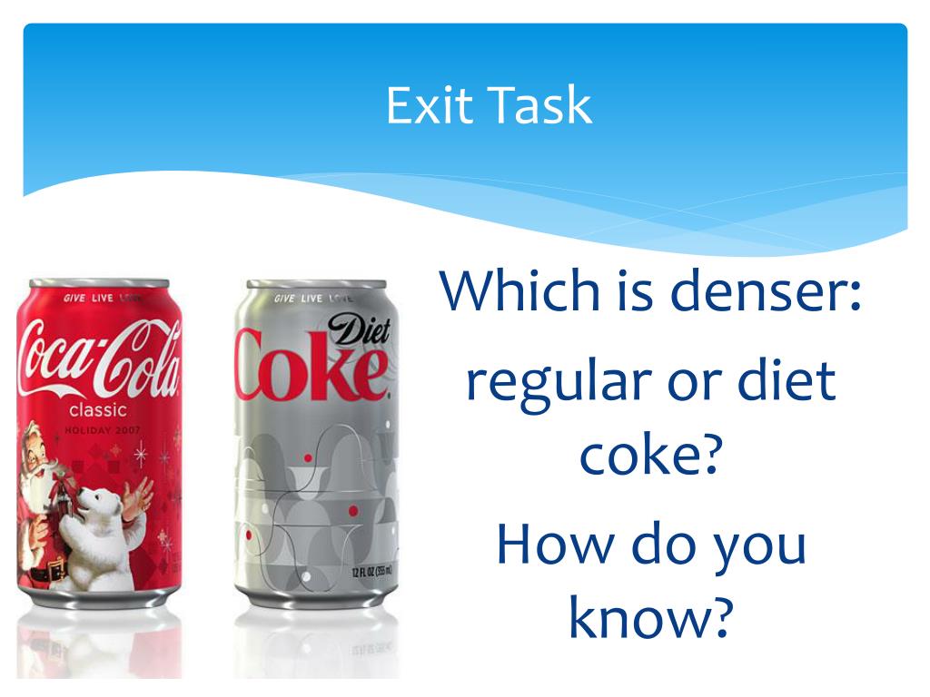 Exit Task Which is denser: regular or diet coke? How do you know?