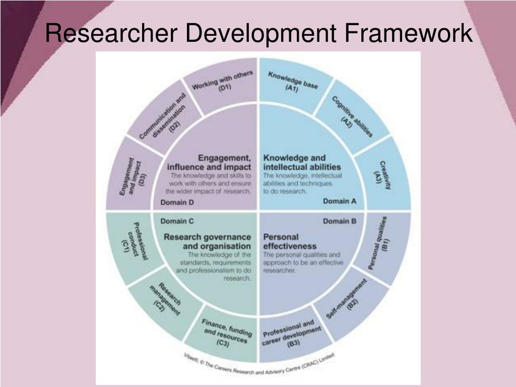 Personal DevelopmentPlanning Cycle During your research, it is important to .. • Identify gaps in skills and knowledge • Identify opportunities to develop experience • Set goals and targets and get involved • Record what you did, how you did it, skills and knowledge used and the final result • Review progress regularly and use progress meetings to cover professional development