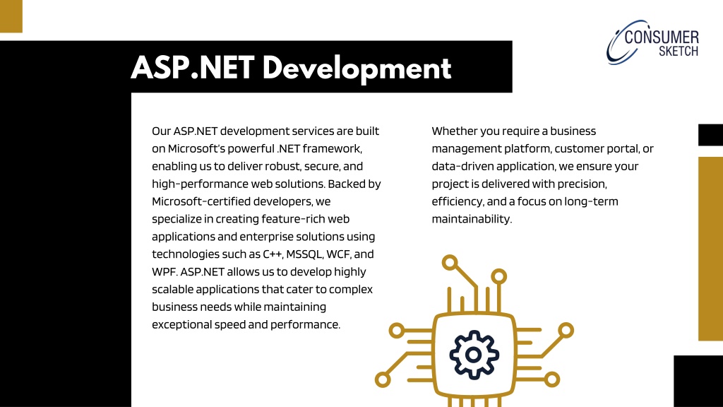 ASP.NET Development Our ASP.NET development services are built on Microsoft’s powerful .NET framework, enabling us to deliver robust, secure, and high-performance web solutions. Backed by Microsoft-certified developers, we specialize in creating feature-rich web applications and enterprise solutions using technologies such as C++, MSSQL, WCF, and WPF. ASP.NET allows us to develop highly scalable applications that cater to complex business needs while maintaining exceptional speed and performance. Whether you require a business management platform, customer portal, or data-driven application, we ensure your project is delivered with precision, efficiency, and a focus on long-term maintainability.