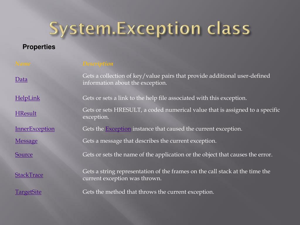 System.Exception class Properties