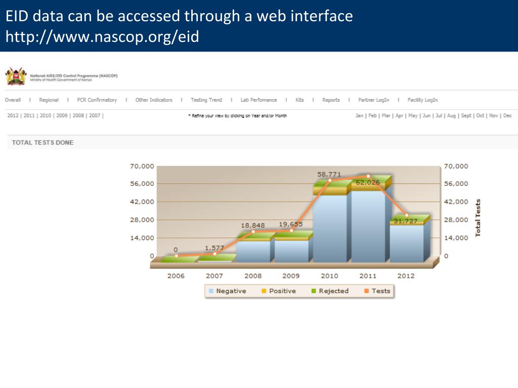 EID data can be accessed through a web interface http://www.nascop.org/eid