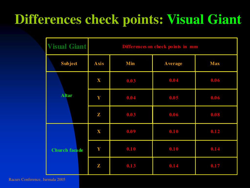 Differences check points: Visual Giant Racurs Conference, Jurmala 2005