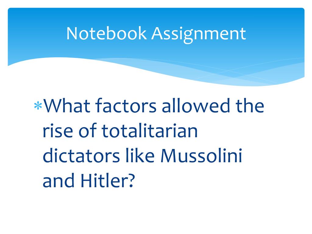 Notebook Assignment What factors allowed the rise of totalitarian dictators like Mussolini and Hitler?