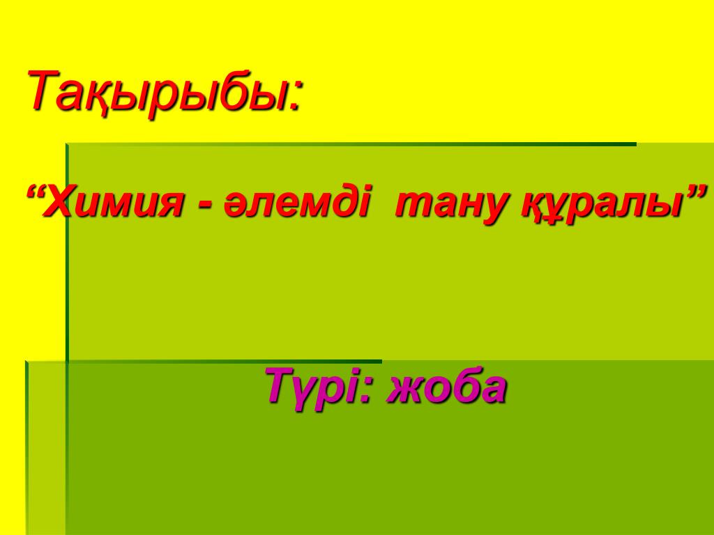 Тақырыбы:“Химия - әлемді тану құралы” Түрі: жоба