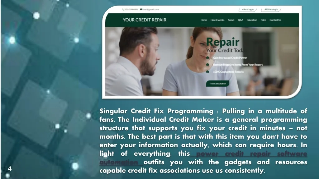 Whatever the source, messes up and blunders in a credit report can effectively influence a client's ability to will credit. Luckily, the power credit repair software automation industry can help you screen and repair credit reports. Credit repair programming lets individuals and associations quickly and successfully right any slips up on a report.
