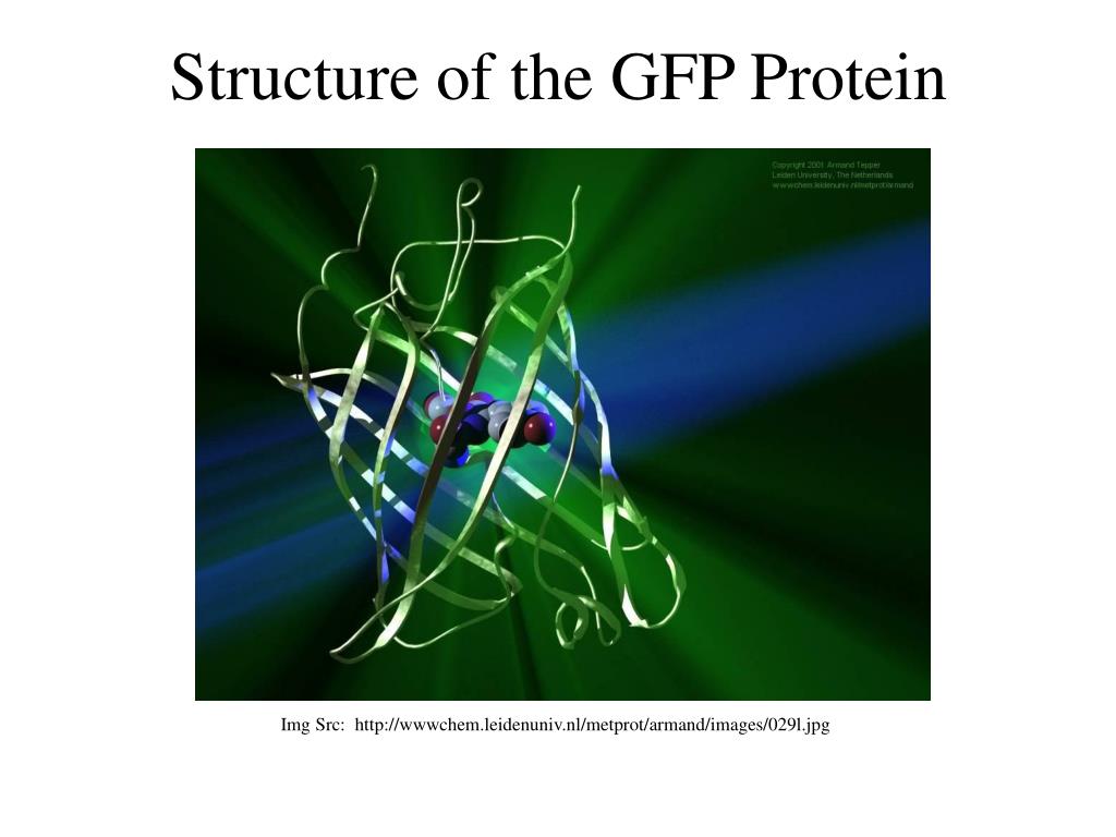 Structure of the GFP Protein Img Src: http://wwwchem.leidenuniv.nl/metprot/armand/images/029l.jpg