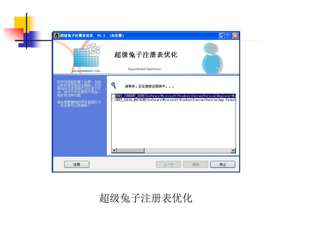 10.4 实用维护软件介绍 • 超级兔子 • 系统优化大师 • 系统克隆 • 硬盘整理 • 解压缩软件