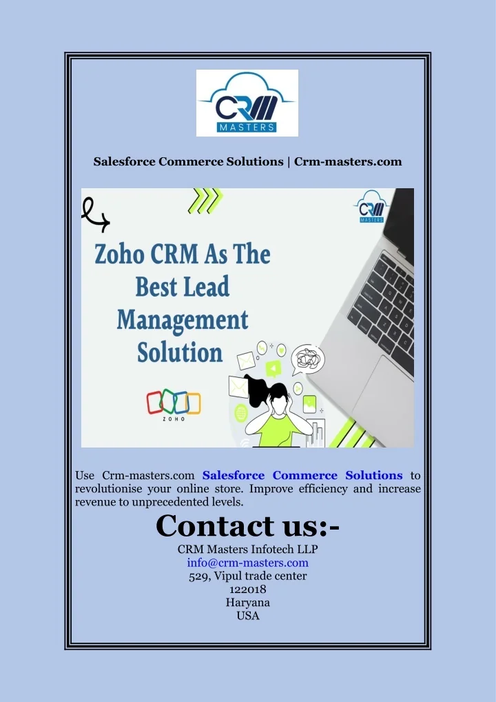 Use Crm-masters.com Salesforce Commerce Solutions to revolutionise your online store. Improve efficiency and increase revenue to unprecedented levels.