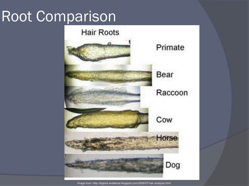 Root Comparison Image from: http://bigfoot-evidence.blogspot.com/2009/07/hair-analysis.html