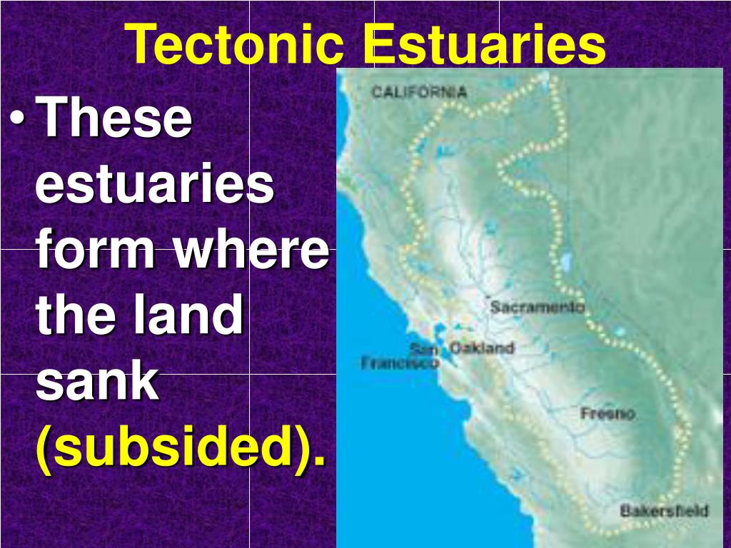 Tectonic Estuaries • These estuaries form where the land sank (subsided).