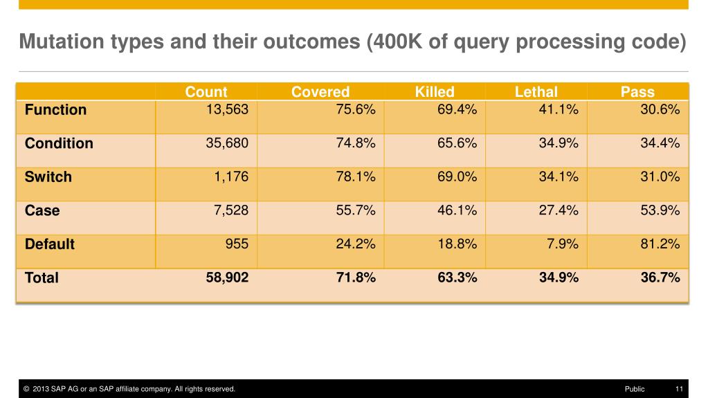 Mutatis Mutandis Evaluating DBMS Test Adequacy with Mutation Testing. Ivan T. Bowman, HANA Product Engineering June 24, 2013. Public. Agenda. Test adequacy and why we want to evaluate it Mutation testing and how to apply it to database systems Conclusions and future work. Test adequacy.