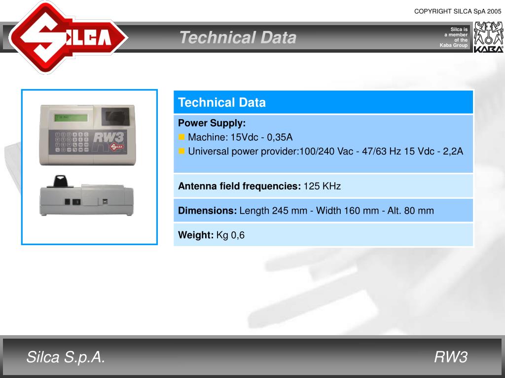 RW3. RW3 SILCA has studied the transponder technology right from its first appearance on the market and today is proud to present a new machine: RW3.