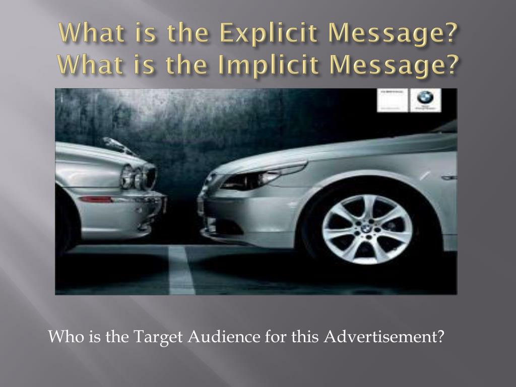 Media Advertising. Implicit Versus Explicit Advertising. Explicit Ads Fully and clearly express or demonstrate what the product is and how it is beneficial to the audience. Focus is on the product or service and getting out the information which describes it.