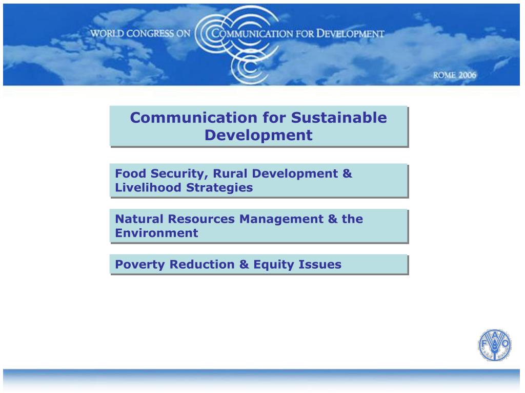 Communication for Sustainable Development Food Security, Rural Development & Livelihood Strategies Natural Resources Management & the Environment Poverty Reduction & Equity Issues