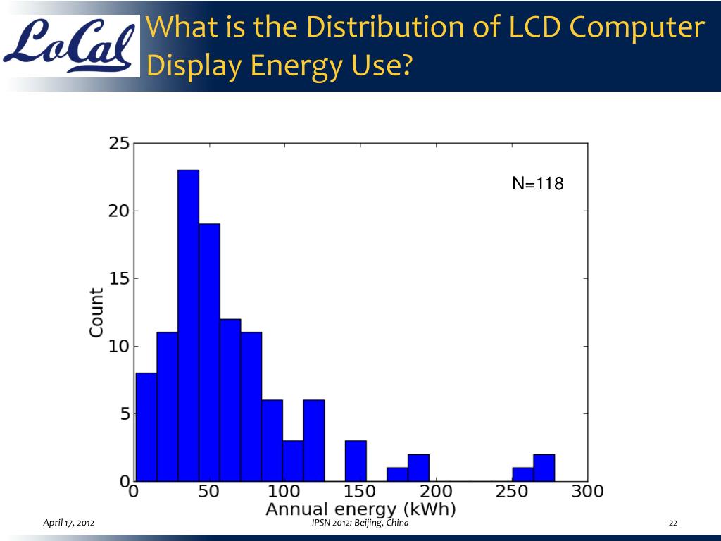 What is the Distribution of LCD Computer Display Energy Use? N=118 IPSN 2012: Beijing, China
