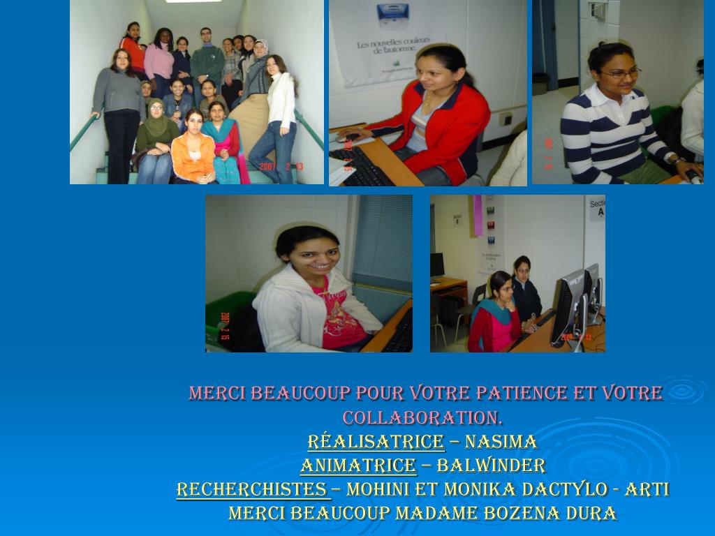MERCI BEAUCOUP POUR VOTRE PATIENCE ET VOTRE COLLABORATION.RÉALISATRICE – NASIMAANIMATRICE – BALWINDER RECHERCHISTES – MOHINI ET MONIKA DACTYLO - ARTIMERCI BEAUCOUP Madame Bozena Dura