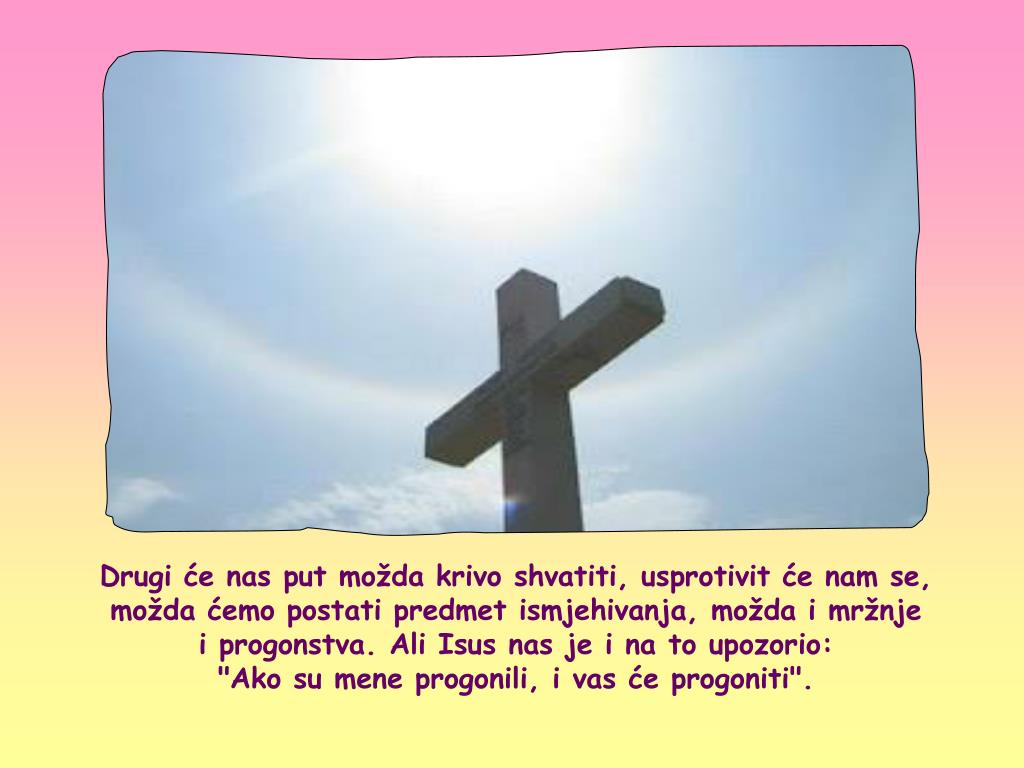 Drugi će nas put možda krivo shvatiti, usprotivit će nam se, možda ćemo postati predmet ismjehivanja, možda i mržnje i progonstva. Ali Isus nas je i na to upozorio: "Ako su mene progonili, i vas će progoniti".