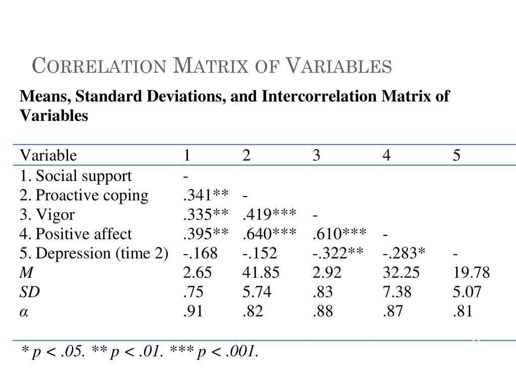 Social Support Proactive Coping Vigor Depression (time 2) Theoretical Model • Relationship between social support, proactive coping and vigor at time 1 and depression at time 2. Time 1