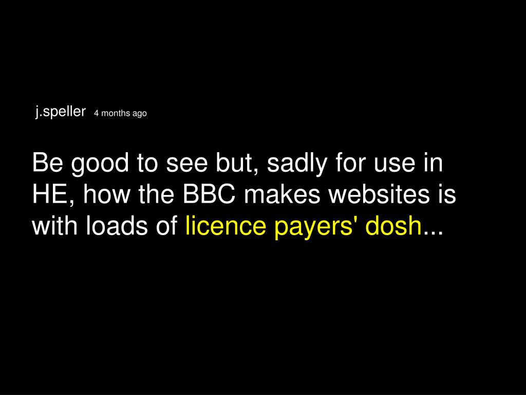 j.speller 4 months agoBe good to see but, sadly for use in HE, how the BBC makes websites is with loads of licence payers' dosh...