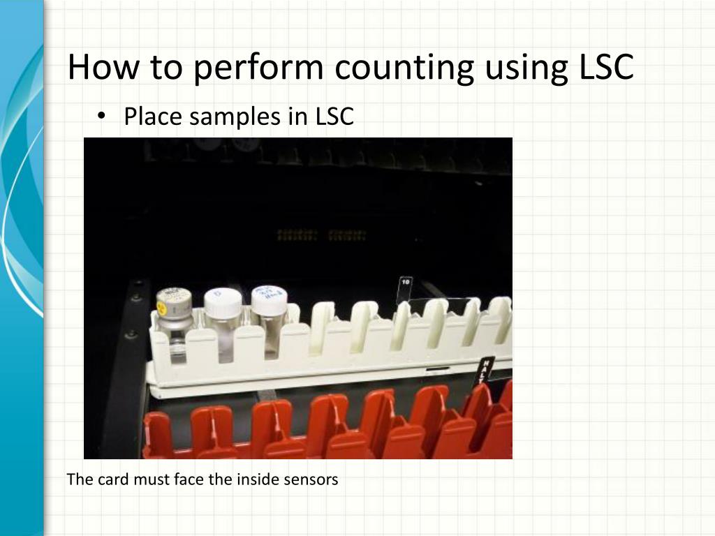 Place samples in LSC How to perform counting using LSC The card must face the inside sensors