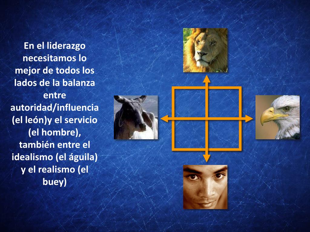 En el liderazgonecesitamos lo mejor de todos los lados de la balanza entre autoridad/influencia(el león)y el servicio (el hombre), también entre el idealismo (el águila) y el realismo (el buey)
