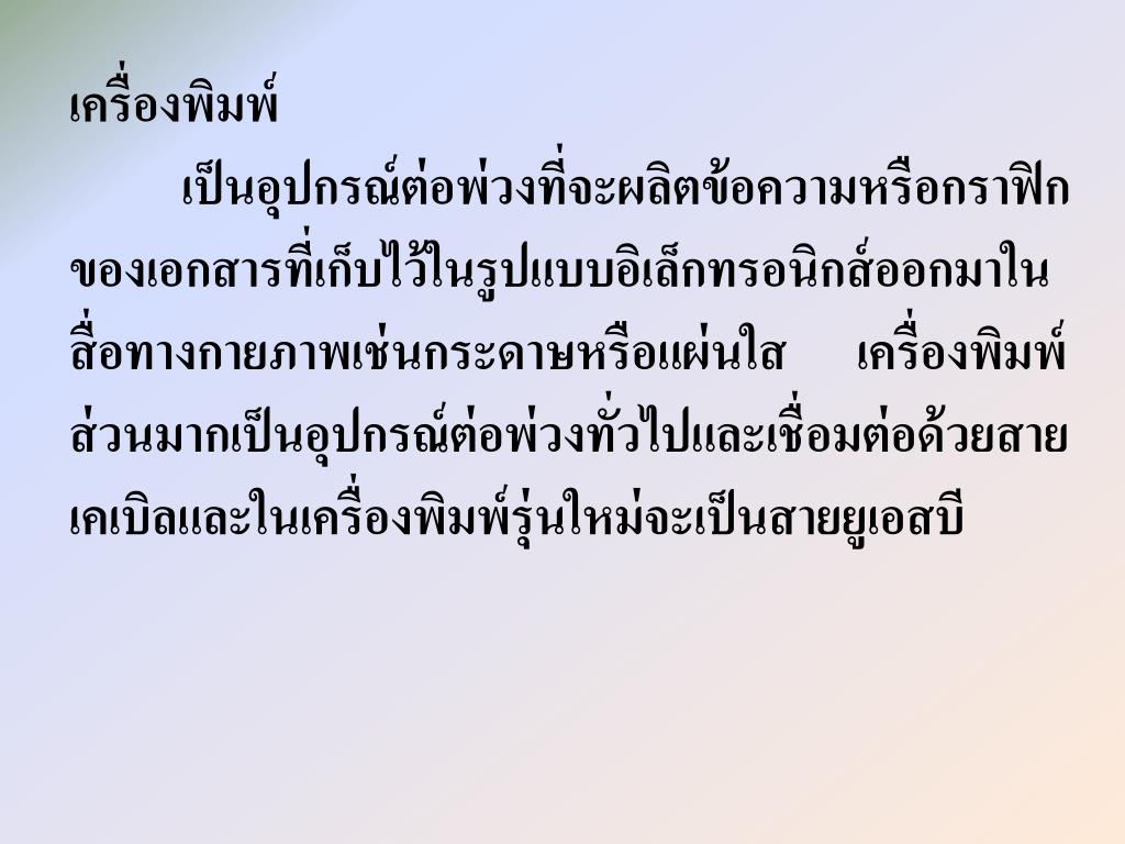 เทคโนโลยี เครื่อง PRINTER ( HP ). เครื่องพิมพ์ เป็นอุปกรณ์ต่อพ่วงที่จะผลิตข้อความหรือกราฟิกของเอกสารที่เก็บไว้ในรูปแบบอิเล็กทรอนิกส์ออกมาในสื่อทางกายภาพเช่นกระดาษหรือแผ่นใส เครื่องพิมพ์ส่วนมากเป็นอุปกรณ์ต่อพ่วงทั่วไปและเชื่อมต่อด้วยสายเคเบิลและในเครื่องพิมพ์รุ่นใหม่จะเป็นสายยู เอส บี.