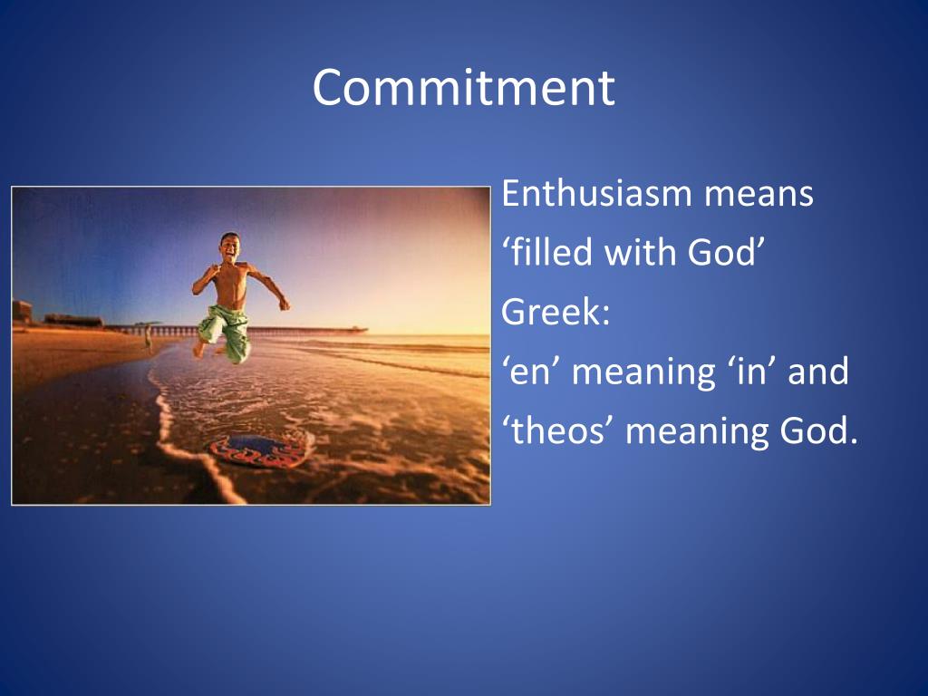 Commitment Enthusiasm means ‘filled with God’ Greek: ‘en’ meaning ‘in’ and ‘theos’ meaning God.
