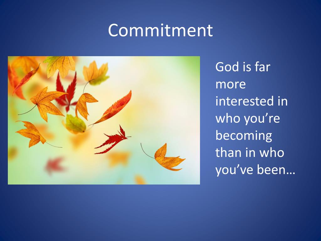 Commitment God is far more interested in who you’re becoming than in who you’ve been…