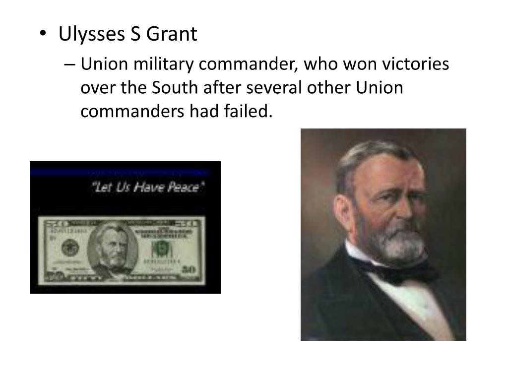 Ulysses S Grant • Union military commander, who won victories over the South after several other Union commanders had failed.