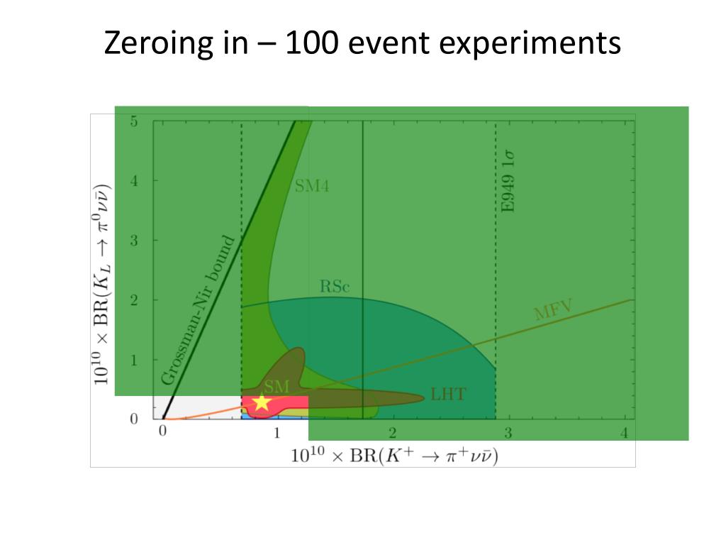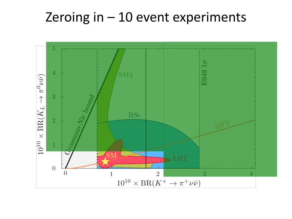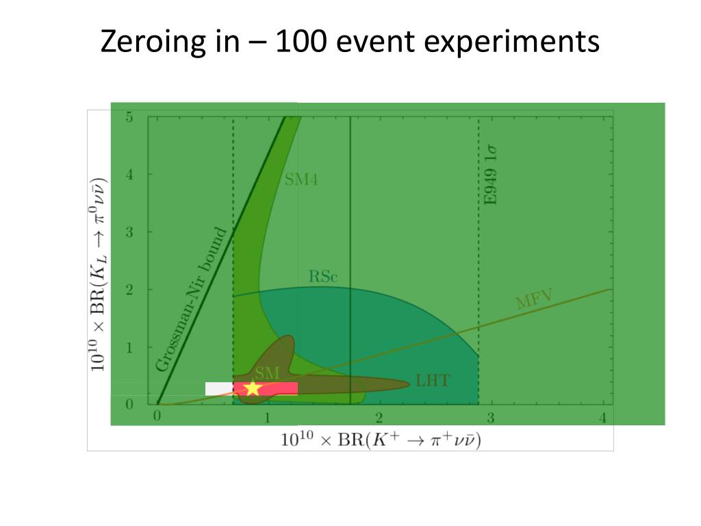 Ghosts of Experiments Present: NA62@ CERN • First to use in-flight technique for K+® p+nn • Physics run scheduled for 2014 • Designed to leap 11 orders of magnitude in a single bound • 75-event class experiment