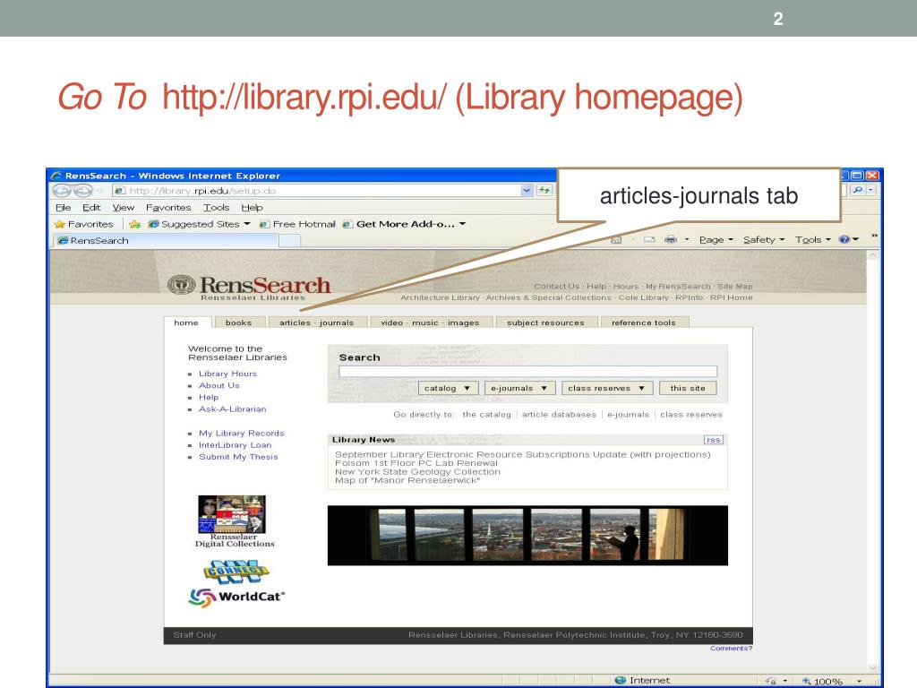 Go Tohttp://library.rpi.edu/ (Library homepage) articles-journals tab