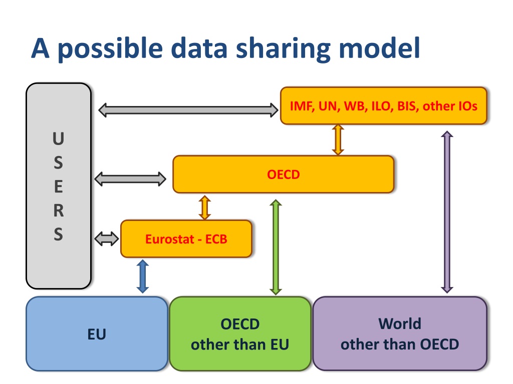 A possible data sharing model U S E R S IMF, UN, WB, ILO, BIS, otherIOs OECD Eurostat - ECB EU OECDotherthan EU World otherthan OECD