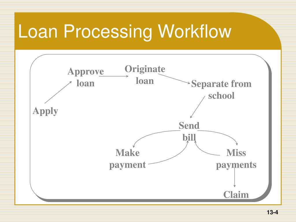 Loan Processing Workflow Originate loan Approve loan Separate from school Apply Send bill Make payment Miss payments Claim