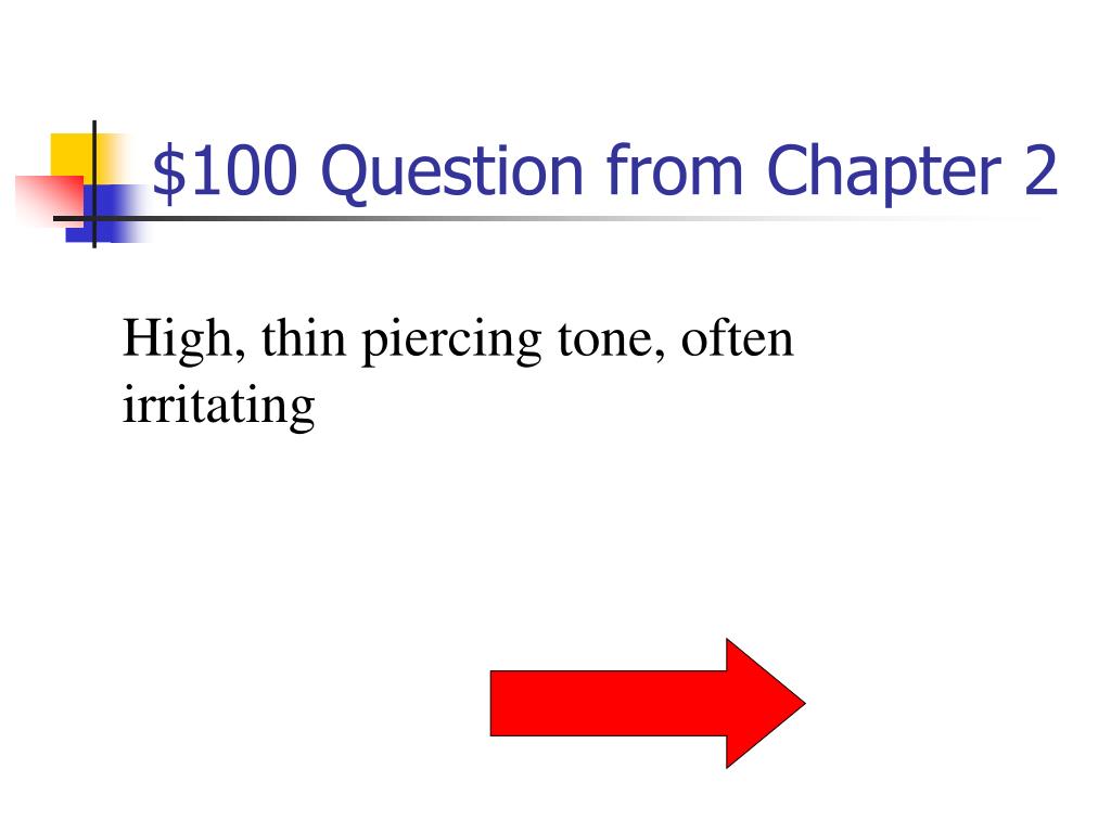 $100 Question from Chapter 2 High, thin piercing tone, often irritating