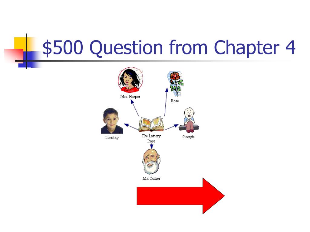 $500 Answer from Chapter 4 Who are characters in the Lottery Rose?