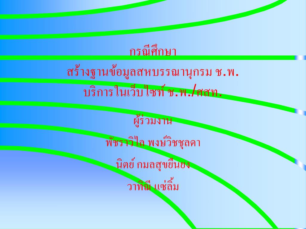กรณีศึกษา สร้างฐานข้อมูลสหบรรณานุกรม ช.พ. บริการในเว็บไซท์ ช.พ./ศสท. ผู้ร่วมงาน พัชราวิไล พงษ์วิชชุลดา นิตย์ กมลสุขยืนยง วาทิณี แซ่ลิ้ม