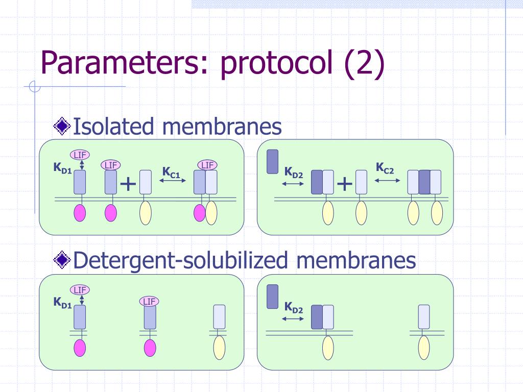 LIF KD1 KC2 LIF LIF KC1 KD2 LIF KD1 LIF KD2 Parameters: protocol (2) • Isolated membranes • Detergent-solubilized membranes