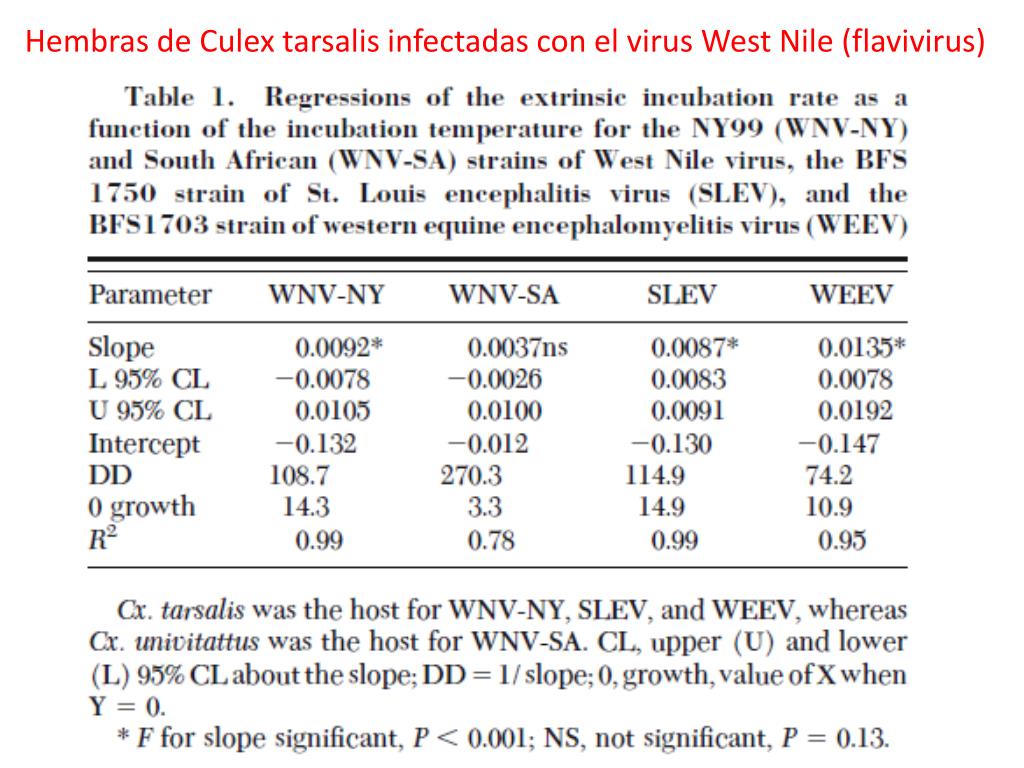 Hembras de Culextarsalis infectadas con el virus West Nile (flavivirus)