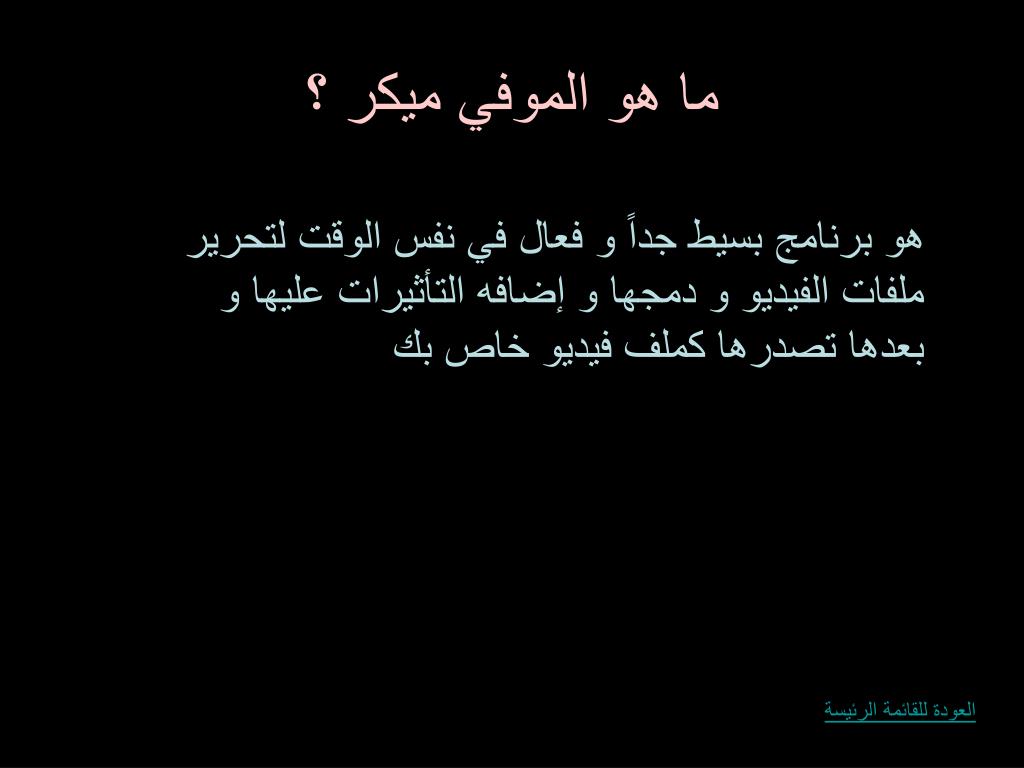 ما هو الموفي ميكر ؟ هو برنامج بسيط جداً و فعال في نفس الوقت لتحرير ملفات الفيديو و دمجها و إضافه التأثيرات عليها و بعدها تصدرها كملف فيديو خاص بك العودة للقائمة الرئيسة