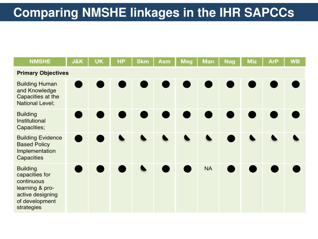 Observations • No specific content on vulnerability to climate change in majority of the training modules • Only Department of Forests, DEST, Department of Horticulture, and SDMA have introduced climate change as a stand alone subject; Not linked to sectoral vulnerabilities • Planning of cropping patterns • Knowledge about indigenous climate hardy crops and new CC resilient cultivars • Disaster management and climate change have not yet come together in the training scheme of SDMA • Need to internalize HPSAPCC and strategies formulated therein